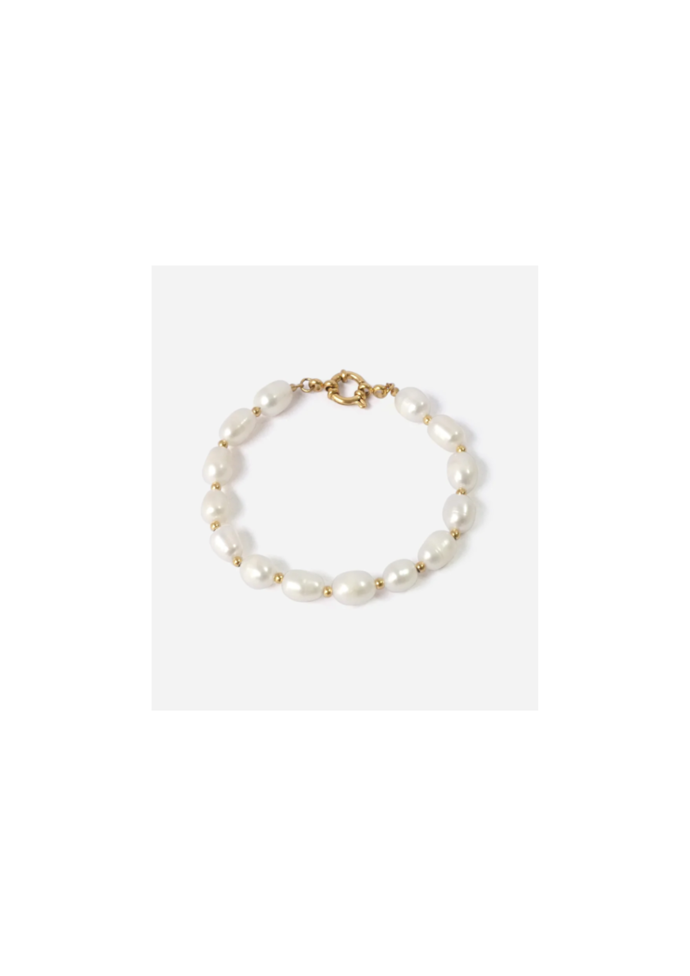 „Die schimmernden Süsswasserperlen, sorgfältig in Handarbeit aneinander gereiht und durch zarte Goldkügelchen akzentuiert, machen dieses Armband zu einem besonderen Highlight. Die Perle steht für Reinheit & Liebe.“ -Tara Style